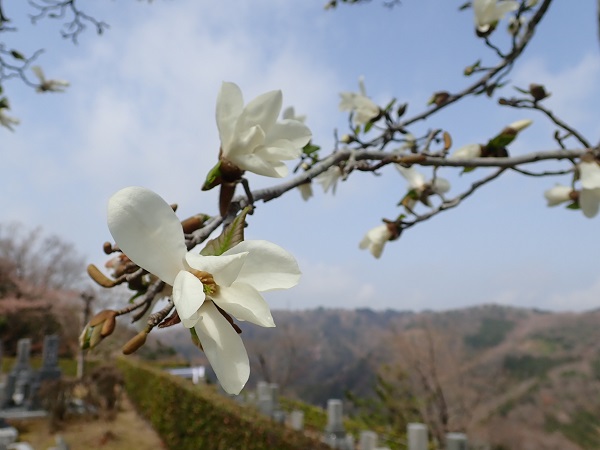 暖かい今年は北摂霊園でも早くも桜が咲き始めました。