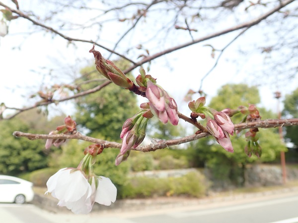 ようやく桜が咲き始めたばかり、固いつぼみもたくさんあり