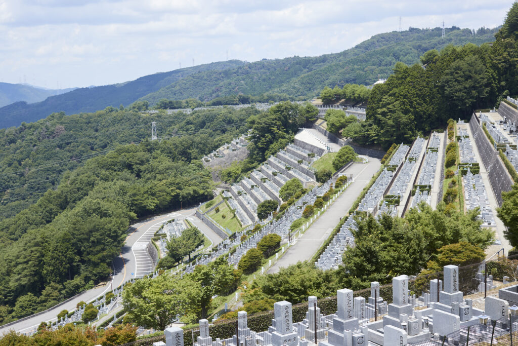 大阪北摂霊園は勝尾寺や箕面の滝から近く明治の森箕面国定公園に隣接した場所にある公園墓地です。公園墓地は『墓域を全体の1/3程度』とし、『森林保存』、『良好な緑地環境』を保ち、自然豊かな霊園となっています。