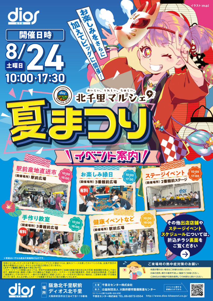 阪急北千里駅前では8月24日(土)に「ディオス北千里夏祭り」が開催されます。