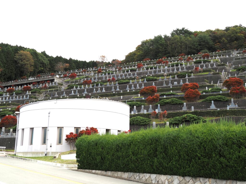 大阪北摂霊園周辺の五月山緑地、勝尾寺、みのお大滝では、紅葉がほんのりと色づき始めています。当霊園も朝晩の寒暖差が増し、入口に立つ銀杏の木々が、黄金色の秋を迎える兆しを見せています。