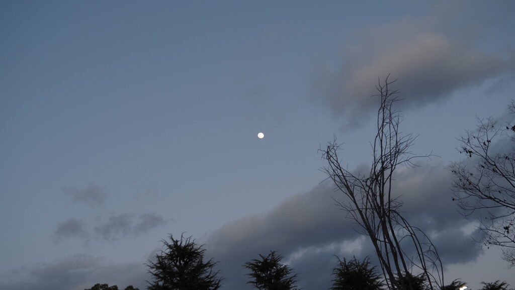 その日は、月が静かにお見送りをしてくれました。