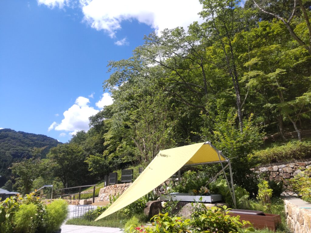 樹木葬墓地もそれぞれの樹木が緑の葉をいっぱいに夏の陽をあびています。