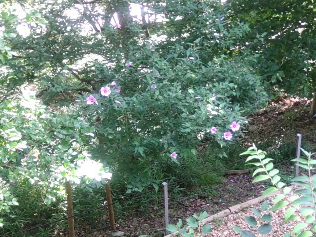 樹木葬墓地に彩りを添えるムクゲの花がピンク色で綺麗に咲いていました。