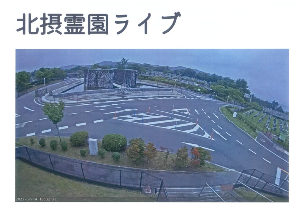 千里中央付近やお住まいの地域とは、天候も少し違いますのでHPで霊園の様子をライブ映像で確認できますので是非ご覧ください。