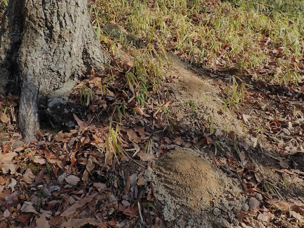 時間が経つと草が生え枯れ葉が積もりやがて自然の風景に溶け込んでゆきます。