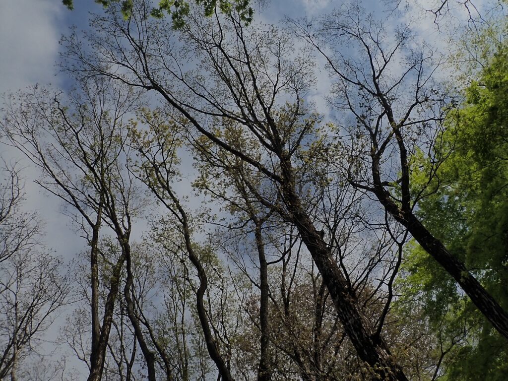 コナラも遠目で見てもわかるくらい若葉がにぎやかになってきました。