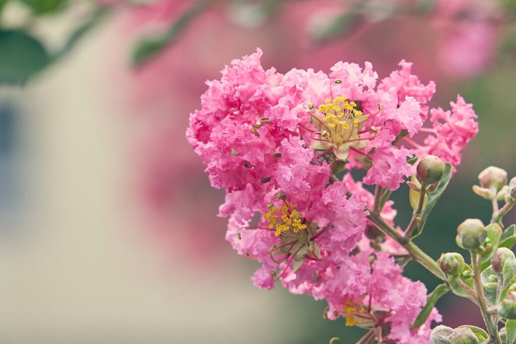夏から秋にかけてピンク色の華やかな花を咲かせます。
