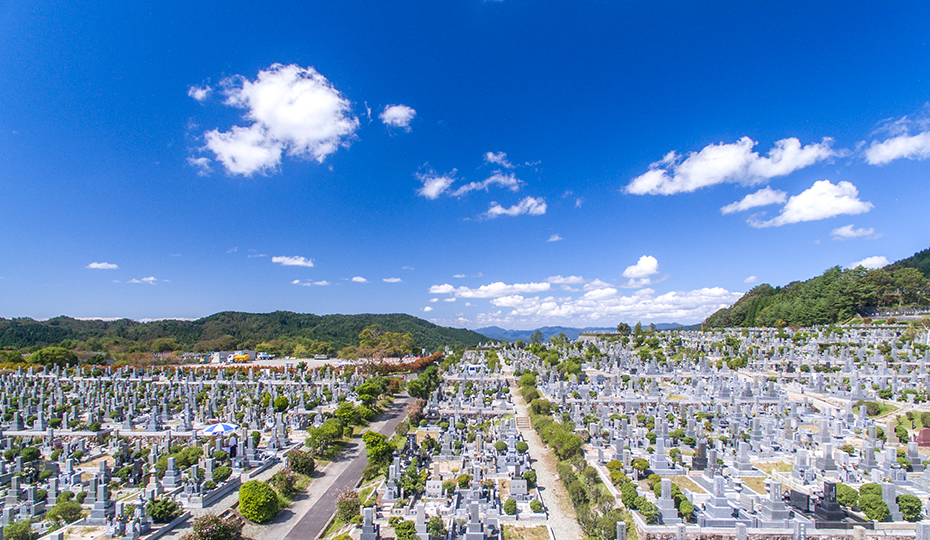大阪北摂霊園は、箕面市、茨木市、豊能郡にまたがる広大な霊園で、北摂山系の緑に囲まれ、自然に恵まれた場所にあります。山の頂に近い場所ですので、見上げれば大空が広がっています。近隣には箕面国定公園もあり、時に野生の動物たちが顔をのぞかせることもある霊園となっています。