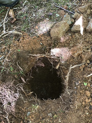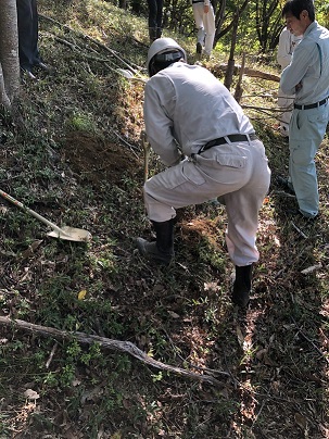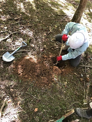本日はその樹木葬予定地において、遺骨を埋葬するために必要な穴の試掘作業を行いました。