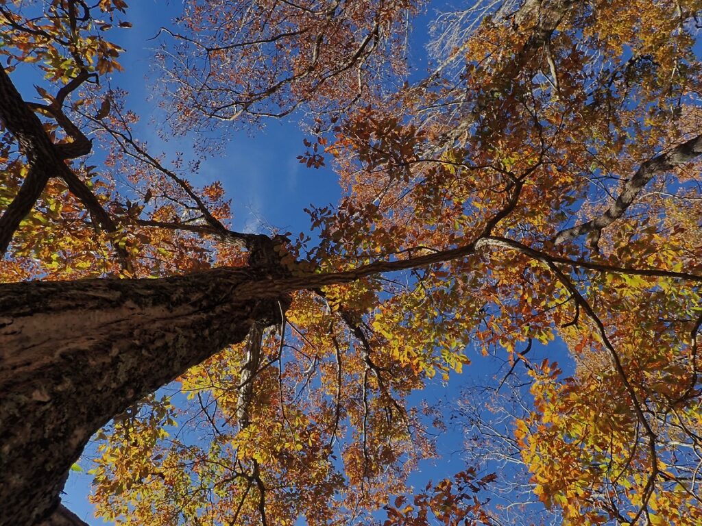 見上げるとコナラの優しい色の黄葉に癒されます。
