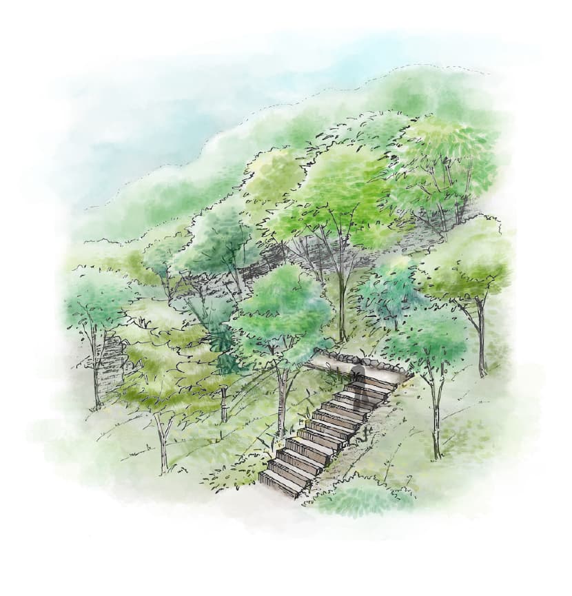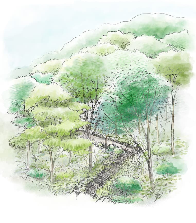 今あるものを活かし、作り替えるのではなく見守り育てていくことを基本的な考え方としています。それが墓地としての管理につながり、森を再生する手助けともなります。また、ゆっくりと森を見守ることが故人への弔いとなるのではと考えます。