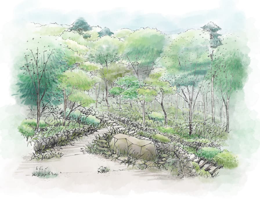 樹木葬エリアは次の3つのエリアに分けて整備します。3つのエリアはそれぞれ異なった過程を経て森に還っていきます。